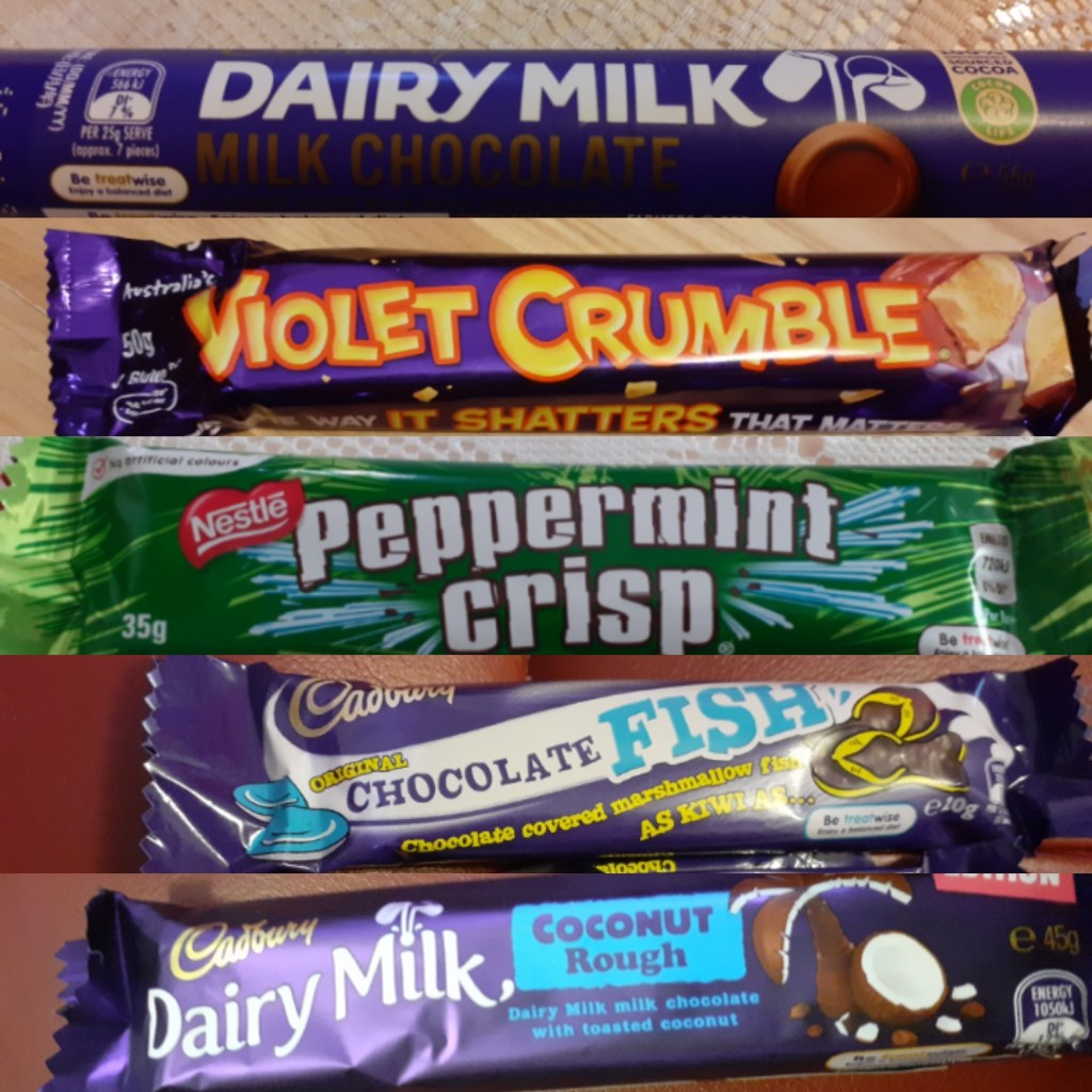 - Violet Crumble bar – similar to our Cadburys Honeycomb Crunchie bar but better in my opinion
