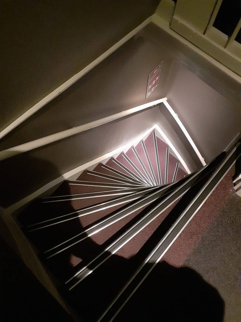 The hotel room was no lie in the attic with the steepest ridiculous stairs i have ever seen, we struggled to get up let alone with the suitcases. It became apparent it was not good and we requested to change rooms. One was available the next day so they moved us down to the 2nd floor from the 4th. I made a video on my insta of the Stairs ( @adampastryguy ) and a pic, the new room was much better, plus they left water bottles each in the room for us each day, which was nice. Their was a safe and bathroom supplies in the room but no fridge. The Tv was near the ceiling and was missing the Romote in the 1st room